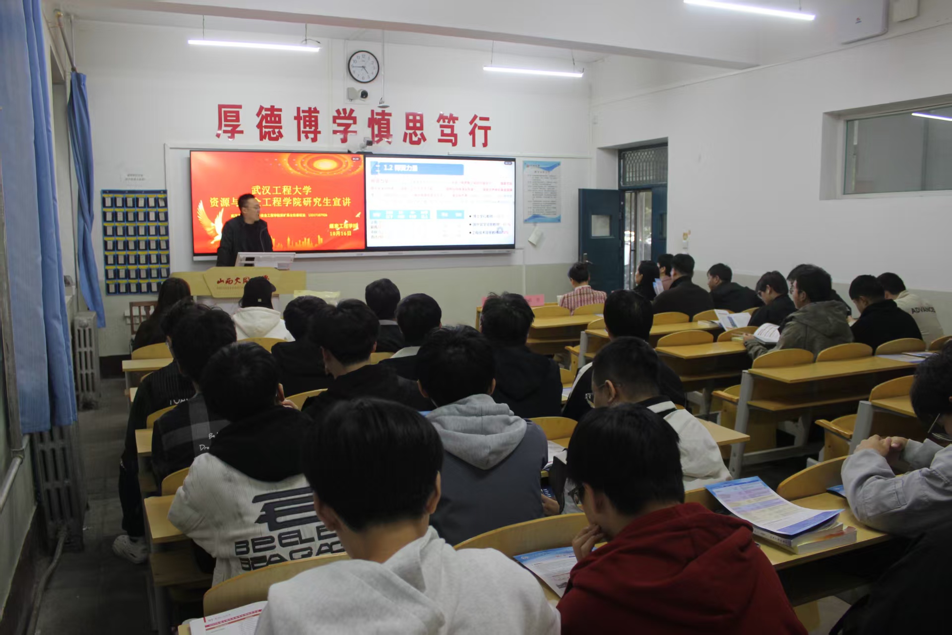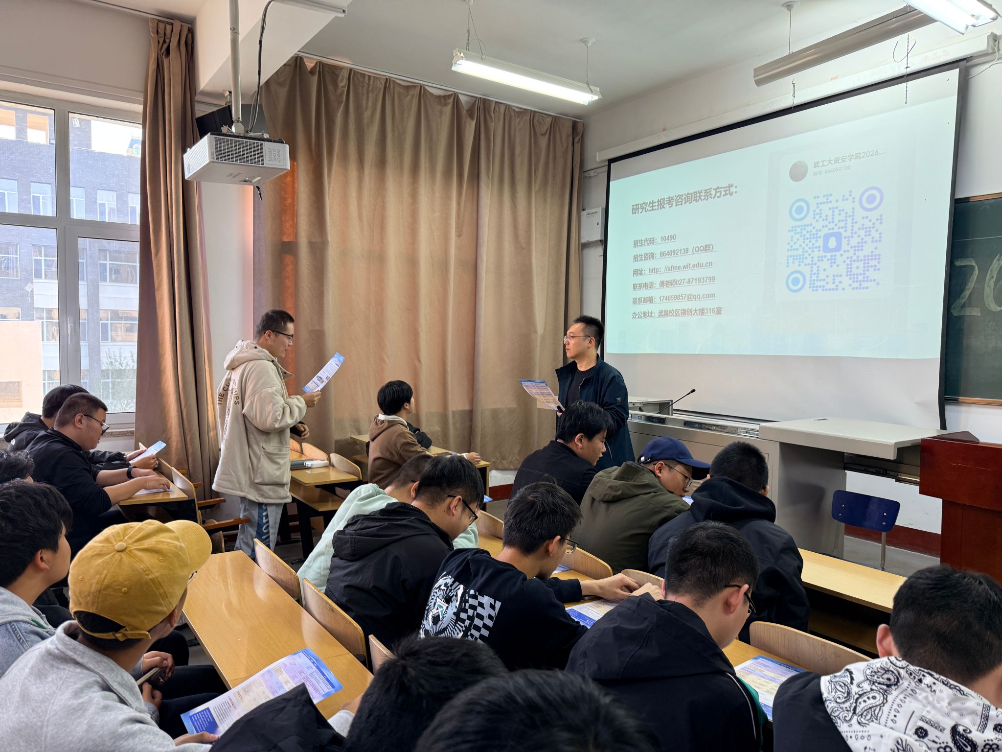 在大同大学煤炭工程学院,宣讲会现场气氛热烈,采矿教研室副主任秦征远老师介绍了学校悠久的发展历史、深厚的学术底蕴以及优越的办学条件,重点展示了学校在工科领域,特别是学院采矿专业的突出优势与特色。安全与应急教研室吴燕玲老师就安全专业和学院特色做了介绍。周芳副院长就学院的师资力量、科研平台、研究方向、人才培养模式、奖助学金体系以及历年来的就业前景等考生密切关注的内容,进行了详尽而深入的解读。宣讲结束后老师与在场学生进行了面对面交流与答疑,耐心解答了同学们关于报考条件、复习准备及校园生活等方面的具体问题。
